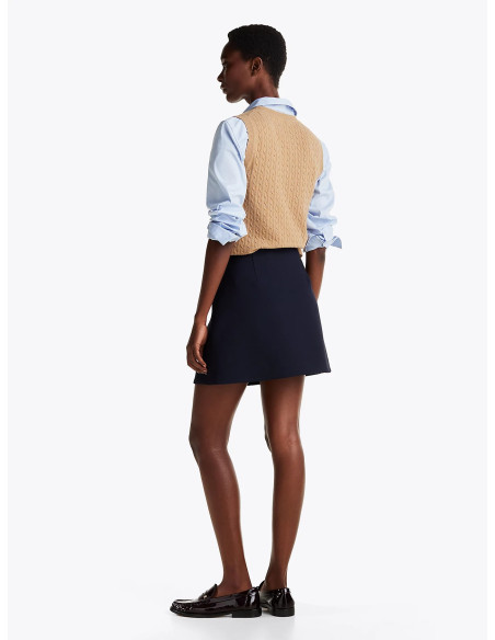 68% გადამუშავებული პოლიესტერი, 28% მდგრადი ვისკოზა, 4% ელასტანი