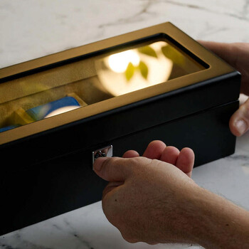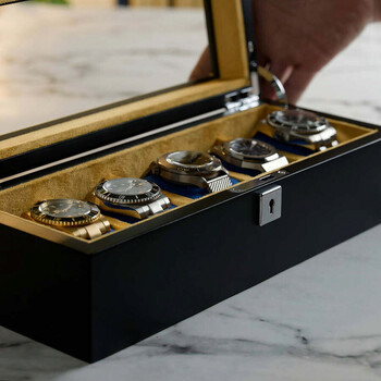Elegant, exclusive yet also exuberant, the Monte Carlo watch collector box is the perfect way to store and display your cherished timepieces. Crafted with a matte finish, this solidly-built collector box features 5 cushioned compartments and a secure built-in key lock. With three vibrant colour options to choose from, this luxurious box is sure to make a statement.