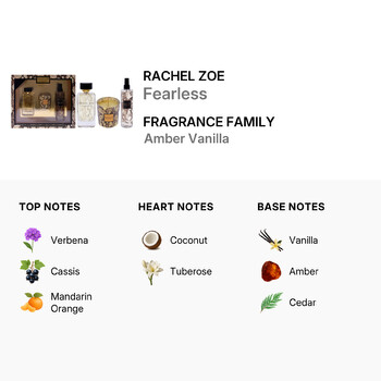 Fearless opens with a lively burst of verbena, juicy cassis, and fresh mandarin orange, creating an energizing first impression. As the scent unfolds, heart notes of creamy coconut and exotic tuberose bring a tropical, floral twist that feels both luxurious and empowering. Finally, the base notes of rich vanilla, golden amber, and smooth cedar leave a lasting trail of elegance and depth.