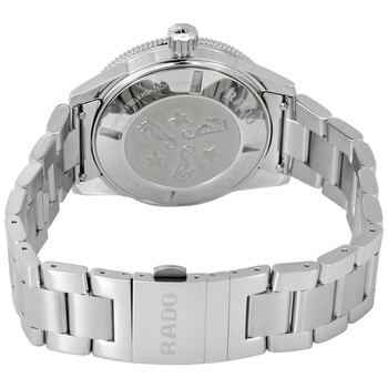 Stainless steel case with a stainless steel bracelet. Uni-directional rotating stainless steel bezel with an inlaid black ring. Black dial with luminous silver-tone hands and index hour markers. Minute markers around the outer rim. Dial Type: Analog. Luminescent hands and markers. Date display at the 3 o'clock position. Caliber ETA C07.611 automatic movement. Scratch resistant sapphire crystal. Solid case back. Round case shape. Case size: 42 mm. Case thickness: 12.3 mm. Band width: 19 mm. Deployment clasp with a push button release. Water resistant at 300 meters / 1000 feet. Functions: date, hour, minute, second. Additional Info: original box, manual (complete accessories). Captain Cook Series. Luxury watch style. Watch label: Swiss Made. Rado Captain Cook Automatic Black Dial Men's Watch R32105158.