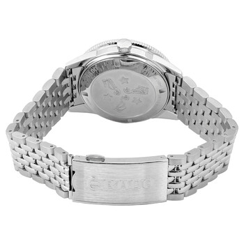 Silver-tone stainless steel case and bracelet. Uni-directional rotating silver-tone stainless steel bezel with a blue (high-tech) ceramic ring. Blue dial with silver-tone hands and index hour markers. Minute markers around the outer rim. Dial Type: Analog. Luminescent hands and markers. Date display at the 3 o'clock position. Automatic movement. Scratch resistant sapphire crystal. Pull / push crown. Solid case back. Round case shape, case size: 37 mm, case thickness: 11.1 mm. Deployment with push button release clasp. Water resistant at 100 meters / 330 feet. Functions: date, hour, minute, second. Captain Cook Series. Casual watch style. Watch label: Swiss Made. Rado Captain Cook Automatic Blue Dial Unisex Watch R32500203.