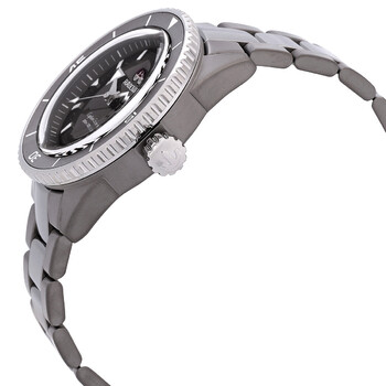 Grey plasma high-tech ceramic and titanium case and bracelet. Uni-directional rotating grey stainless steel bezel. Grey dial with silver-tone hands and index hour markers. Minute markers around the outer rim. Dial Type: Analog. Luminescent hands and markers. Date display at the 3 o'clock position. Rado Calibre R763 automatic movement with an 80-hour power reserve. Scratch resistant sapphire crystal. Screw down crown. Solid case back. Round case shape, case size: 43 mm, case thickness: 14.6 mm. Deployment with push button release clasp. Water resistant at 300 meters / 1000 feet. Functions: date, hour, minute, second. Captain Cook High-tech Ceramic Diver Series. Dive watch style. Watch label: Swiss Made. Item Variations: 01.763.6144.3.010. Rado Captain Cook High-Tech Ceramic Diver Automatic Grey Dial Men's Watch R32144102.
