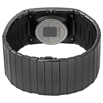 Black ceramic case with a black ceramic bracelet. Fixed black ceramic bezel. Black dial with purple hands. Dial Type: Analog. Date display at the 4 o'clock position. Chronograph - three sub-dials displaying: 60 second, 30 minute and 1/10 second. Rado Calibre 538 quartz movement. Scratch resistant sapphire crystal. Pull / push crown. Solid case back. Rectangle case shape. Case size: 35 mm x 36 mm. Band length: 7.5 inches. Water resistant at 30 meters / 100 feet. Functions: chronograph, date, hour, minute, second. Additional Info: subdials set with 106 gemstones (total weight 0.148ct). Dress watch style. Watch label: Swiss Made. Rado Ceramica XL Chronograph Black Dial Men's Watch R21714732.