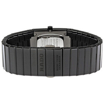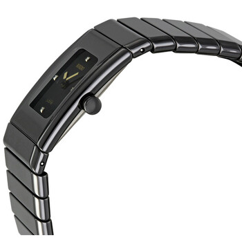 Black ceramic case with a black ceramic bracelet. Fixed black ceramic bezel. Black dial with gold-tone hands and diamond markers at the quarter hour positions. The Rado name appears below the 12 o'clock position. Quartz movement. Scratch resistant sapphire crystal. Solid case back. Case diameter: 19.4 mm x 25 mm. Push button folding clasp. Water resistant at 30 meters / 100 feet. Rado Ceramica XS Jubile Ladies Watch R21540742.