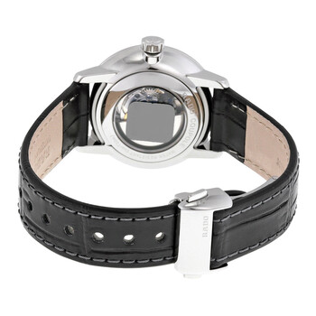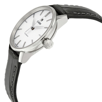Stainless steel case with a black leather strap. Fixed stainless steel bezel. Silver dial with silver-tone hands and index hour markers. Dial Type: Analog. Automatic movement. Scratch resistant sapphire crystal. Transparent case back. Case diameter: 32 mm. Round case shape. Strao with: 16 mm. Tang clasp. Water resistant at 50 meters / 165 feet. Functions: hour, minute, second. Dress watch style. Watch label: Swiss Made. Rado Coupole Classic Automatic Silver Dial Black Leather Ladies Watch R22862015.