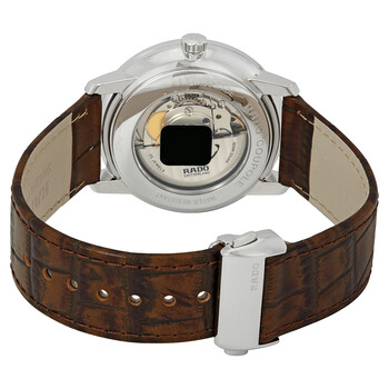 Stainless steel case with a brown leather strap. Fixed stainless steel bezel. Brown dial with silver-tone hands and index hour markers. Minute markers around the outer rim. Dial Type: Analog. Date display above the 6 o'clock position. Power reserve indicator. Rado calibre 772 automatic movement with an 80-hour power reserve. Scratch resistant sapphire crystal. Pull / push crown. Transparent case back. Round case shape. Case size: 41 mm. Case thickness: 11.7 mm. Deployment clasp. Water resistant at 50 meters / 165 feet. Functions: date, hour, minute, second, power reserve indicator. Casual watch style. Watch label: Swiss Made. Rado Coupole Classic XL Automatic Brown Dial Men's Watch R22878305.