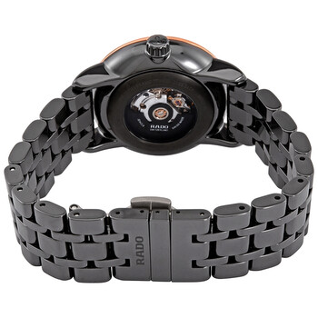 Anthracite ceramic case with a anthracite ceramic bracelet. Fixed rose gold-tone bezel set with 72 diamonds. Black dial with rose gold-tone hands and index hour markers. Diamonds set at 3, 6, 9 and 12 o'clock poisitions. Dial Type: Analog. Date display at the 6 o'clock position. Rado calibre 580 (ETA 2681) automatic movement with a 38-hour power reserve. Scratch resistant sapphire crystal. Pull / push crown. Solid case back. Round case shape. Case size: 33 mm. Case thickness: 10.5 mm. Fold over clasp with a safety release. Water resistant at 50 meters / 165 feet. Functions: date, hour, minute, second. Additional Info: 72 diamonds on bezel 0.309 ct / 4 diamonds on dial 0.026 ct. Dress watch style. Watch label: Swiss Made. Rado DiaMaster Automatic Diamond Black Dial Ladies Watch R14099737.