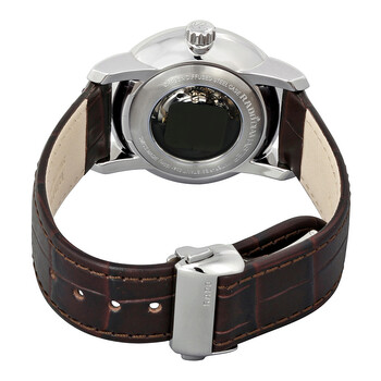 Carbon-diffused steel case with a brown leather strap. Fixed carbon-diffused steel bezel. Silver dial with rose gold-tone hands and Arabic numeral hour markers. Minute markers around the outer rim. Dial Type: Analog. Date display above the 6 o'clock position. Rado calibre ETA 2681 automatic movement with a 38-hour power reserve. Scratch resistant sapphire crystal. Transparent case back. Case size: 33 mm. Case thickness: 9.6 mm. Round case shape. Fold over clasp. Water resistant at 50 meters / 165 feet. Functions: date, hour, minute, second. Luxury watch style. Watch label: Swiss Made. Rado Diamaster Automatic Silver Dial Ladies Watch R14050136.