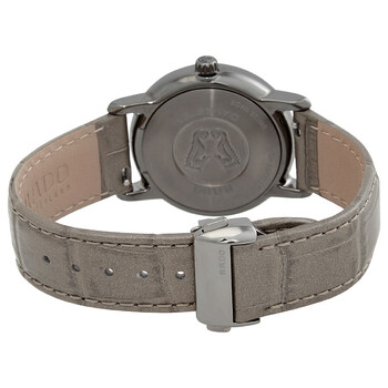 Plasma (hight-tech) ceramic case with a grey leather strap. Fixed plasma (hight-tech) ceramic bezel. Brown (diamond-set) dial with silver-tone hands and index hour markers. Dial Type: Analog. Date display at the 6 o'clock position. Quartz movement. Scratch resistant sapphire crystal. Pull / push crown. Solid case back. Round case shape. Case size: 33 mm. Case thickness: 7.8 mm. Tang clasp. Water resistant at 50 meters / 165 feet. Functions: date, hour, minute, second. Additional Info: 24 diamonds, 0.069 carat. Diamaster Diamonds Series. Dress watch style. Watch label: Swiss Made. Rado DiaMaster Diamonds Quartz Brown Dial Ladies Watch R14064735.