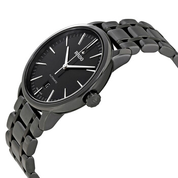 Black (high-tech) ceramic case and bracelet. Fixed black (high-tech) ceramic bezel. Black dial with silver-tone hands and index hour markers. Minute markers around the outer rim. Dial Type: Analog. Date display at the 6 o'clock position. ETA caliber 2892-A2 automatic movement, based upon ETA 2890, containing 21 Jewels, bitting at 28800 vph, and has a power reserve of approximately 42 hours. Scratch resistant sapphire crystal. Pull / push crown. Transparent case back. Round case shape. Case size: 41 mm. Case thickness: 10 mm. Band width: 20 mm. Fold over clasp with a push button release. Water resistant at 100 meters / 330 feet. Functions: date, hour, minute, second. Diamaster Series. Dress watch style. Watch label: Swiss Made. Rado DiaMaster XL Automatic Black Dial Men's Watch R14073182.