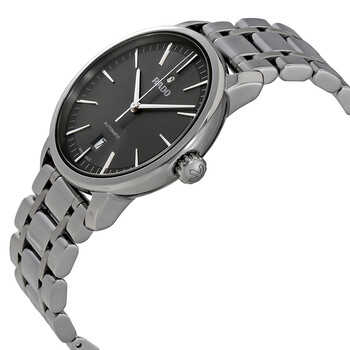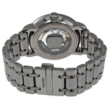 Plasma (high-tech) ceramic case and bracelet. Fixed plasma (high-tech) ceramic bezel. Dark grey dial with silver-tone hands and index hour markers. Minute markers around the outer rim. Dial Type: Analog. Date display at the 6 o'clock position. Rado calibre 629 (ETA 2892-A2) automatic movement, based upon ETA 2892-A2, containing 21 Jewels, bitting at 28800 vph, and has a power reserve of approximately 42 hours. Scratch resistant sapphire crystal. Pull / push crown. Transparent case back. Round case shape. Case size: 41 mm. Case thickness: 10 mm. Band width: 20 mm. Fold over clasp with a push button release. Water resistant at 100 meters / 330 feet. Functions: date, hour, minute, second. Diamaster Series. Dress watch style. Watch label: Swiss Made. Rado DiaMaster XL Automatic Dark Grey Dial Men's Watch R14074112.