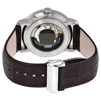 Plasma (high-tech) ceramic case with a brown leather strap. Fixed plasma (high-tech) ceramic bezel. Silver dial with rose gold-tone hands and index hour markers. Dial Type: Analog. Date display at the 3 o'clock position. ETA caliber 2892-A2 automatic movement, based upon ETA 2890, containing 21 Jewels, bitting at 28800 vph, and has a power reserve of approximately 42 hours. Scratch resistant sapphire crystal. Pull / push crown. Transparent case back. Round case shape. Case size: 41 mm. Case thickness: 9.9 mm. Deployment clasp. Water resistant at 100 meters / 330 feet. Functions: date, hour, minute, second. Additional Info: limited edition of 200 pieces. Diamaster Xl Series. Dress watch style. Watch label: Swiss Made. Rado DiaMaster XL Silver Dial Automatic Men's Limited Edition Watch R14074146.