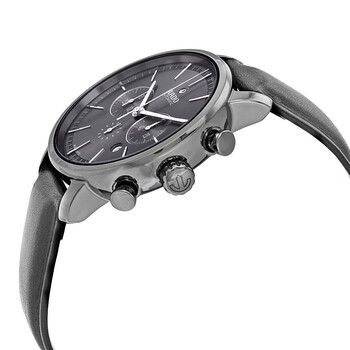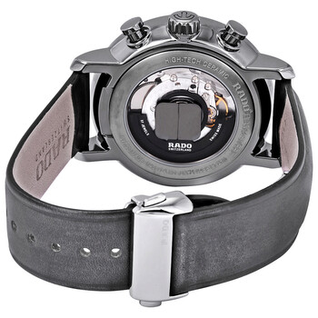 Plasma high-tech ceramic case with a leather strap. Fixed ceramic bezel. Dark grey dial with silver-tone hands and index hour markers. Dial Type: Analog. Date display between 4 and 5 o'clock position. ETA 2894-2 automatic movement with a 45-hour power reserve. Scratch resistant sapphire crystal. Transparent case back. Case size: 45 mm. Case thickness: 12.6 mm. Round case shape. Water resistant at 100 meters / 330 feet. Functions: chronograph, date, hour, minute, second. Dress watch style. Watch label: Swiss Made. Rado DiaMaster XXL Dark Grey Dial Automatic Men's Leather Watch R14076115.