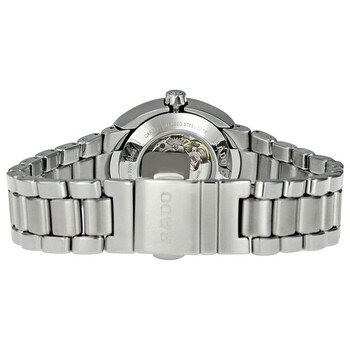 Ceramic case with a stainless steel bracelet. Fixed ceramos bezel. Black dial with silver-tone hands and stick hour markers. Arabic numeral marks the 12 o'clock position. minute markers around the outer rim. Dial Type: Analog. Luminescent hands and markers. Date display at the 3 o'clock position. ETA Caliber 2824-2 automatic movement with a 40-hour power reserve. Scratch resistant sapphire crystal. Skeleton case back. Round case shape. Deployment clasp. Water resistant at 100 meters / 330 feet. Functions: date, hour, minute, second. Casual watch style. Watch label: Swiss Made. Rado D-Star Automatic Ceramos Watch R15514153.