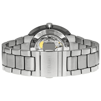 Silver-tone ceramos case with a stainless steel bracelet. Fixed silver-tone ceramos bezel. Silver dial with luminous silver-tone hands and index hour markers. Minute markers around the outer rim. Dial Type: Analog. Luminescent hands and markers. Date display at the 3 o'clock position. Automatic movement. Scratch resistant sapphire crystal. Pull / push crown. Transparent case back. Round case shape. Case size: 42 mm. Case thickness: 12 mm. Band width: 25 mm. Band length: 8 inches. Fold over clasp with a push button release. Water resistant at 100 meters / 330 feet. Functions: date, hour, minute, second. Additional Info: Ceramos is made of high-tech ceramic and a metal composite. D-star Series. Dress watch style. Watch label: Swiss Made. Rado D-Star Automatic Silver Dial Ceramos Men's Watch R15938103.