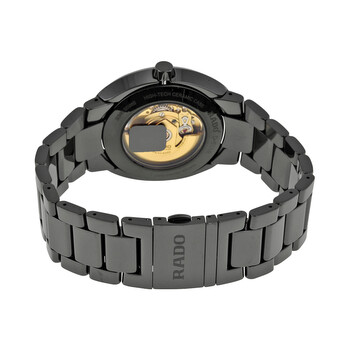 Black ceramic case with a black ceramic bracelet. Fixed black ceramic bezel. Black dial with luminous gold-tone hands and index hour markers. Minute markers around the outer rim. Dial Type: Analog. Luminescent hands and markers. Date display at the 3 o'clock position. Swiss automatic movement. Scratch resistant sapphire crystal. Transparent case back. Case diameter: 42 mm. Butterfly clasp. Water resistant at 100 meters / 330 feet. Functions: date, hour, minute, second. Casual watch style. Watch label: Swiss Made. Rado D-Star Black Dial Automatic Ceramic Men's Watch R15609162.