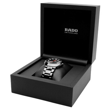 Black ceramic case with a black ceramic bracelet. Fixed black ceramic bezel. Black dial with luminous silver-tone hands and index hour markers. Arabic numerals mark the 6, 9 and 12 o'clock pooisitions. Arabic numeral minute markers (at 5 minute intervals). Minute markers around the outer rim. Dial Type: Analog. Luminescent hands and markers. Date display at the 3 o'clock position. Quartz movement. Scratch resistant sapphire crystal. Pull / push crown. Solid case back. Oval case shape. Case dimensions: 42 mm x 46 mm. Case thickness: 10 mm. Band width: 24 mm. Band length: 8 inches. Triple fold over clasp. Water resistant at 100 meters / 330 feet. Functions: date, hour, minute, second. Casual watch style. Watch label: Swiss Made. Rado D-Star Black Dial Black Ceramic Men's Watch R15517152.