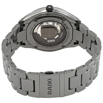 Plasma (hi tech) ceramic case with a plasma (hi tech) ceramic bracelet. Fixed plasma (hi tech) ceramic bezel. Silver dial with luminous black hands and index hour markers. Minute markers around the outer rim. Dial Type: Analog. Luminescent hands and markers. Date display at the 3 o'clock position. Rado calibre 692 (ETA 2892-A2) automatic movement with a 42-hour power reserve. Scratch resistant sapphire crystal. Pull / push crown. Skeleton case back. Round case shape. Case size: 42 mm. Deployment clasp with a push button release. Water resistant at 100 meters / 330 feet. Functions: date, hour, minute, second. Additional Info: ref# 629.0272.3.010. Luxury watch style. Watch label: Swiss Made. Rado Hyperchome XL Silver Dial Men's Watch R32272102.