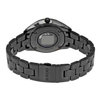 Black (high tech) ceramic case and bracelet. Fixed black (high tech) ceramic bezel. Black dial with luminous black hands and index hour markers. Minute markers around the outer rim. Dial Type: Analog. Luminescent hands and markers. Date display at the 3 o'clock position. Automatic movement. Scratch resistant sapphire crystal. Pull / push crown. Transparent case back. Round case shape. Case size: 36 mm. Case thickness: 10 mm. Band width: 18 mm. Fold over clasp with a push button release. Water resistant at 50 meters / 165 feet. Functions: date, hour, minute, second. Hyperchrome Series. Dress watch style. Watch label: Swiss Made. Rado Hyperchrome Automatic Black Dial Ceramic Ladies Watch R32260182.