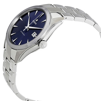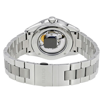 Stainless steel case with a stainless steel bracelet. Fixed stainless steel bezel. Blue dial with silver-tone hands and index hour markers. Dial Type: Analog. Date display at the 3 o'clock position. Rado calibre 658 (ETA 2824-2) automatic movement with a 38-hour power reserve. Scratch resistant sapphire crystal. Transparent case back. Round case shape. Case size: 38.7 mm. Case thickness: 11.3 mm. Fold over clasp. Water resistant at 50 meters / 165 feet. Functions: date, hour, minute, second. Dress watch style. Watch label: Swiss Made. Rado Hyperchrome Automatic Blue Dial Men's Watch R32115213.