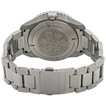Carbon diffused steel case with a hardened titanium bracelet. Uni-directional rotating carbon diffused steel bezel with a black ceramic top ring. Black dial with luminous silver-tone hands and index hour markers. Minute markers around the outer rim. Dial Type: Analog. Luminescent hands and markers. Date display at the 3 o'clock position. Automatic movement. Scratch resistant sapphire crystal. Screw down crown. Solid case back. Round case shape. Case size: 45 mm. Case thickness: 13.8 mm. Band width: 22 mm. Deployment with push button release clasp. Water resistant at 200 meters / 660 feet. Functions: date, hour, minute, second. Casual watch style. Watch label: Swiss Made. Rado HyperChrome Captain Cook Automatic Black Dial Men's Watch R32501153.