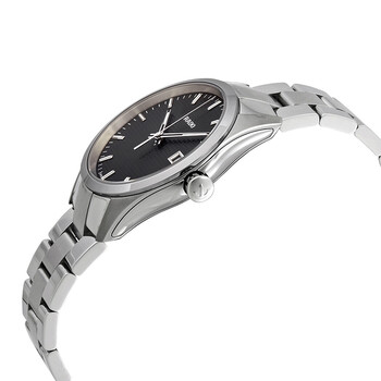 Silver-tone ceramos (hi-tech ceramic & metal composite) case with a silver-tone ceramos (hi-tech ceramic & metal composite) bracelet. Fixed silver-tone ceramos (hi-tech ceramic & metal composite) bezel. Black dial with silver-tone hands and index hour markers. Minute markers around the outer rim. Dial Type: Analog. Luminescent hands and markers. Date display at the 3 o'clock position. Quartz movement. Scratch resistant sapphire crystal. Pull / push crown. Solid case back. Round case shape, case size: 40 mm, case thickness: 10 mm. Band width: 19 mm, band length: 8.5 inches. Double folding with push buttons clasp. Water resistant at 50 meters / 165 feet. Functions: date, hour, minute, second. Luxury watch style. Watch label: Swiss Made. Rado Hyperchrome Quartz Black Dial Men's Watch R32297163.