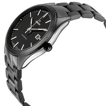 Black (high-tech) ceramic case and bracelet. Fixed black ceramic bezel. Black dial with luminous silver-tone hands and index hour markers. Minute markers around the outer rim. Dial Type: Analog. Luminescent hands and markers. Date display at the 3 o'clock position. Automatic movement with a 42-hour power reserve. Scratch resistant sapphire crystal. Pull / push crown. Transparent case back. Case diameter: 42 mm. Round case shape. Band width: 20 mm. Band length: 8 inches. Deployment clasp. Water resistant at 100 meters / 330 feet. Functions: date, hour, minute, second. Dress watch style. Rado Hyperchrome XL Automatic Black Dial Black High-tech Ceramic Men's Watch R32265152.