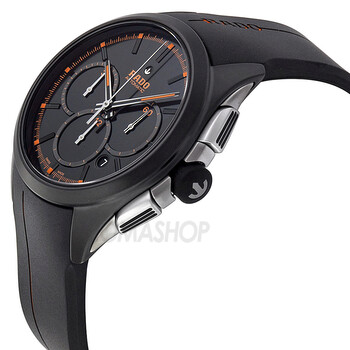 Black ceramic case with a black rubber strap. Fixed black ceramic bezel. Black dial with luminous orange hands and index hour markers. Minute markers around the outer rim. Dial Type: Analog. Luminescent hands and markers. Date display between the 4 and 5 o'clock positions. Chronograph - three sub-dials displaying: 60 second, 60 minute and 12 hour. ETA caliber 2894-2 automatic movement, based upon ETA 2892-2, containing 37 Jewels, bitting at 28800 vph, and has a power reserve of approximately 38 hours. Scratch resistant sapphire crystal. Skeleton case back. Round case shape. Case size: 45 mm. Case thickness: 13 mm. Band width: 20 mm. Fold over clasp with a push button release. Water resistant at 100 meters / 330 feet. Functions: chronograph, date, hour, minute, second. Hyperchrome Series. Dress watch style. Watch label: Swiss Made. Rado Hyperchrome XXL Automatic Chronograph Black Dial Black Rubber Men's Watch R32525169.