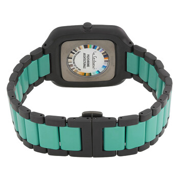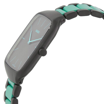 Iron grey high-tech ceramic case with a iron grey and turquoise high-tech ceramic bracelet. Fixed iron grey high-tech ceramic bezel. Iron grey dial with index hour markers. Dial Type: Analog. Rado Calibre R420 quartz movement. Scratch resistant sapphire crystal. Pull / push crown. Solid case back. Square case shape, case size: 37 mm, case thickness: 5 mm. Deployment with push button release clasp. Water resistant at 30 meters / 100 feet. Functions: hour, minute. Additional Info: limited to just 999 pieces. True Square Series. Luxury watch style. Watch label: Swiss Made. Item Variations: 01.420.6045.3.016. Rado Limited Edition True Square Quartz Iron Grey Dial Unisex Watch R27045162.