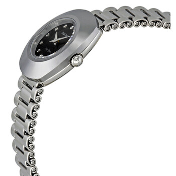 Stainless steel case with a stainless steel bracelet. Fixed, stainless steel bezel. Black dial with silver-tone hands and silver dots hour markers. Push / pull crown. Solid case back. Case diameter: 22 mm. Case thickness: 7.2 mm. Deployment clasp. Functions: hours, miniutes. Dress watch style. Rado Original Black Dial Stainless Steel Bracelet Ladies Watch R21558153.