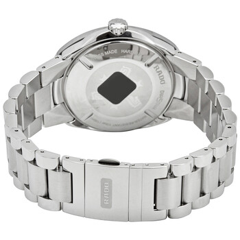Steel case with a steel bracelet. Fixed bezel. Black blue dial with luminous hands and dot hour markers. Minute markers around the outer rim. Date displays at the 3 o'clock position. Automatic movement. Scratch resistant sapphire crystal. Case diameter: 46 mm x 39 mm. Deployment clasp. Water resistant at 100 meters / 330 feet. Functions: hours, minutes, seconds, date. Rado Original Men's Watch R12637163.