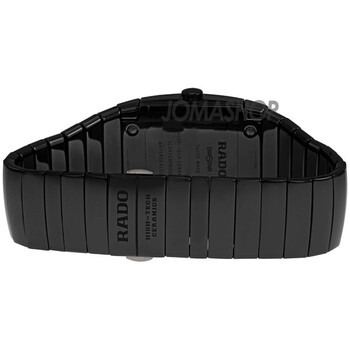 Black ceramic case with a black ceramic bracelet. Fixed black ceramic bezel. Black dial with luminous gold-tone hands Diamonds mark then 3, 9 and 12 o'clock positions. The Rado name appears below the 12 o'clock position. Date display appears at the 6 o'clock position. Luminescent hands and markers. Quartz movement. Scratch resistant sapphire crystal. Solid case back. Case dimensions: 32.4 mm x 41.4 mm. Case thickness: 10.9 mm. Push button deployment clasp. Water resistant at 30 meters / 100 feet. Rado Sintra Black Ceramic Men's Watch R13724712