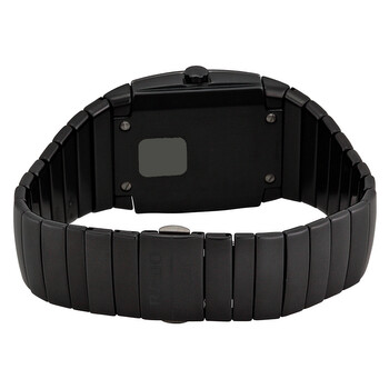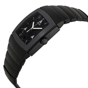 Black ceramic case with a black ceramic bracelet. Fixed black ceramic bezel. Black dial with silver-tone hands and index hour markers. Minute markers. Dial Type: Analog. Luminescent hands and markers. Date display at the 6 o'clock position. Quartz movement. Scratch resistant sapphire crystal. Solid case back. Case dimensions: 34 mm x 32 mm. Case thickness: 11 mm. Hidden push button deployment clasp. Water resistant at 30 meters/ 100 feet. Functions: hours, minutes, seconds, date. Rado Sintra Black Ceramic Quartz Men's Watch R13765152.