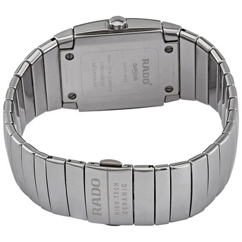 Silver-tone ceramos case with a silver-tone ceramos (hi-tech ceramic and metal composite) bracelet. Fixed silver-tone ceramos (hi-tech ceramic and metal composite bezel. Blue dial with silver-tone hands and index hour markers. Minute markers around the outer rim. Dial Type: Analog. Luminescent hands and markers. Date display at the 6 o'clock position. Rado Calibre 580 (ETA 2681) quartz movement with a 38-hour power reserve. Scratch resistant sapphire crystal. Pull / push crown. Solid case back. Tonneau case shape, case size: 41mm x 32 mm, case thickness: 10 mm. Band width: 27 mm, band length: 8 inches. Titanium double folding clasp. Water resistant at 30 meters / 100 feet. Functions: date, hour, minute, second. Dress watch style. Watch label: Swiss Made. Rado Sintra Quartz Blue Dial Men's Watch R13720202.