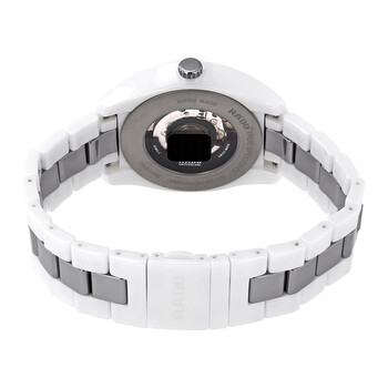 White ceramic case with a two-tone (silver-tone and white) ceramic and stainless steel bracelet. Fixed white ceramic bezel. Silver-tone dial with silver-tone hands and index hour markers. Dial Type: Analog. Date display at the 6 o'clock position. Automatic movement. Scratch resistant sapphire crystal. Pull / push crown. Solid case back. Round case shape, case size: 41 mm, case thickness: 10 mm. Double folding clasp. Water resistant at 30 meters / 100 feet. Functions: date, hour, minute, second. Luxury watch style. Watch label: Swiss Made. Rado Speccio Automatic Silver Dial Men's Watch R31507102.
