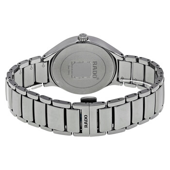 High-tech plasma ceramic case and bracelet. Fixed plasma ceramic bezel. Black dial with gold-tone hands and index hour markers. Dial Type: Analog. Date display at the 3 o'clock position. Quartz movement. Scratch resistant sapphire crystal. Pull / push crown. Solid case back. Case size: 40 mm. Round case shape. Deployment clasp. Water resistant at 50 meters / 165 feet. Functions: date, hour, minute, second. Dress watch style. Watch label: Swiss Made. Rado True Black Dial Ceramic Men's Watch R27239152.