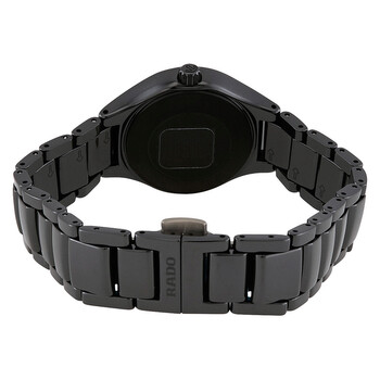 Black high-tech ceramic case with a black high-tech ceramic bracelet. Fixed black high-tech ceramic bezel. Black mother of pearl dial with rose gold-tone hands and diamonds hour markers. Dial Type: digital. Date display at the 3 o'clock position. Automatic movement. Scratch resistant sapphire crystal. Pull / push crown. Solid case back. Round case shape, case size: 30 mm, case thickness: 9.8 mm. Butterfly clasp. Water resistant at 50 meters / 165 feet. Functions: date, hour, minute, second. Dress watch style. Watch label: Swiss Made. Rado True Black Mother of Pearl Diamond Dial Automatic Ladies Watch R27242852.