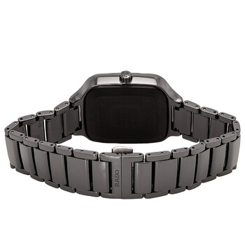 Black titanium case with a black ceramic bracelet. Fixed black titanium bezel. Black dial with rose gold-tone hands and index hour markers. Minute markers around the outer rim. Dial Type: Analog. Date display at the 6 o'clock position. Automatic movement. Scratch resistant sapphire crystal. Square case shape, case size: 38 mm. Fold over clasp with a safety release. Water resistant at 50 meters / 165 feet. Functions: date, hour, minute, second. Additional Info: original box, international warranty card, manual (complete accessories). True Square Series. Luxury watch style. Rado True Square Automatic Black Dial Men's Watch R27078172.