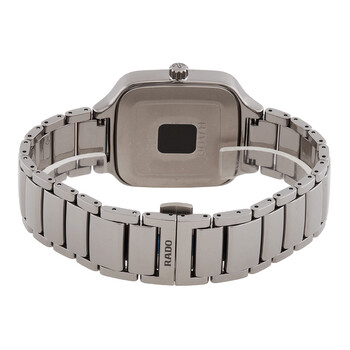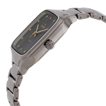 Plasma high-tech ceramic case and bracelet. Fixed plasma high-tech ceramic bezel. Grey dial with rose gold-tone hands and diamond hour markers. Dial Type: Analog. Date display at the 3 o'clock position. Automatic movement with an 80-hour power reserve. Scratch resistant sapphire crystal. Pull / push crown. Solid case back. Square case shape, case size: 38 mm, case thickness: 9.7 mm. Fold over clasp with a safety release. Water resistant at 50 meters / 165 feet. Functions: date, hour, minute, second. True Square Series. Dress watch style. Watch label: Swiss Made. Item Variations: 01.763.6077.3.070. Rado True Square Automatic Diamond Grey Dial Unisex Watch R27077702.