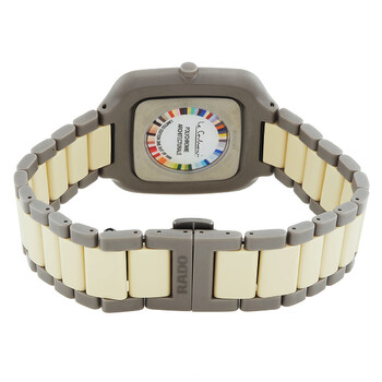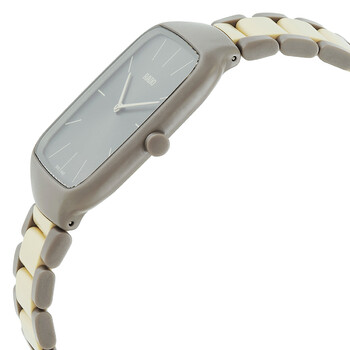 Grey high-tech ceramic case with a grey and cream high-tech ceramic bracelet. Fixed grey high-tech ceramic bezel. Grey dial with index hour markers. Dial Type: Analog. Rado Calibre R420 quartz movement. Scratch resistant sapphire crystal. Pull / push crown. Solid case back. Square case shape, case size: 37 mm, case thickness: 5 mm. Deployment with push button release clasp. Water resistant at 30 meters / 100 feet. Functions: hour, minute. Additional Info: limited to just 999 pieces. True Square Series. Luxury watch style. Watch label: Swiss Made. Item Variations: 01.420.6046.3.017. Rado True Square Thinlin Quartz Grey Dial Unisex Watch R27046172.