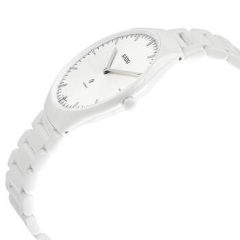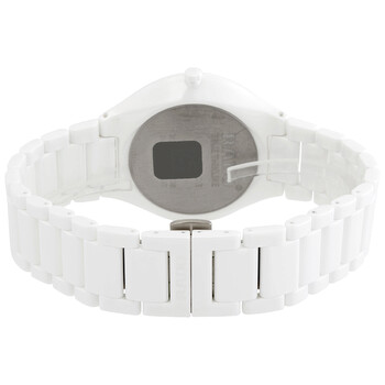 White ceramic case with a white ceramic bracelet. Fixed white ceramic bezel. White dial with silver-tone hands and index hour markers. Minute markers around the outer rim. Dial Type: Analog. ETA caliber 2892-A2 automatic movement, based upon ETA 2890, containing 21 Jewels, bitting at 28800 vph, and has a power reserve of approximately 42 hours. Scratch resistant sapphire crystal. Pull / push crown. Solid case back. Round case shape, case size: 40 mm, case thickness: 8 mm. Band width: 21 mm. Fold over clasp with a push button release. Water resistant at 30 meters / 100 feet. Functions: hour, minute. Casual watch style. Watch label: Swiss Made. Rado True Thinline Automatic White Dial Ceramic Unisex Watch R27970102.