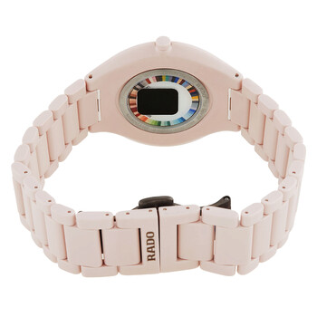 Pale sienna high-tech ceramic case and bracelet. Fixed pale sienna high-tech ceramic bezel. Pale sienna dial with index hour markers. Dial Type: Analog. Quartz movement. Scratch resistant sapphire crystal. Pull / push crown. Solid case back. Round case shape, case size: 39 mm, case thickness: 5 mm. Deployment with push button release clasp. Water resistant at 30 meters / 100 feet. Functions: hour, minute. Additional Info: limited edition: 999 pieces. True Thinline Les Couleurs Series. Luxury watch style. Watch label: Swiss Made. Item Variations: 01.420.6097.3.067. Rado True Thinline Les Couleurs Quartz Pale Sienna Dial Unisex Watch R27097672.