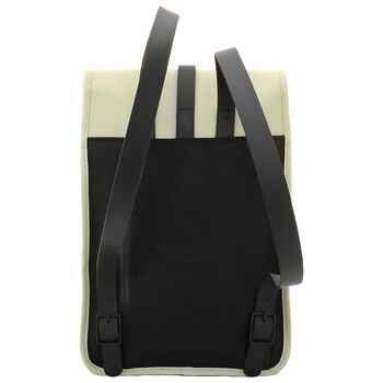 Rains Unisex Backpack. SKU: 1302008 Earth. Color: Earth. Size: H 16 x D 4 x W 11.6 inches. Rains Earth Waterproof Mini Backpack. This mini backpack is crafted from waterproof signature PU fabric and features a flap with magnetic snap fastenings, a single main compartment, an external back zip pocket, an internal zip pocket, and a flat pocket that fits a 13" laptop, along with adjustable shoulder straps for a comfortable fit. 100% PES (Polyester). Coating: 100% PU (Polyurethane).