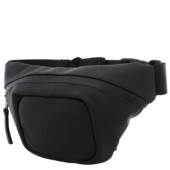 Brand: Rains. SKU: 14820-BLACK. Color: Black. Size: W:24cm x H:12cm x D:2.5cm. Rains Embossed Logo Belt Bag. This belt bag features a zip-fastening compartment, an embossed logo on the front, and an adjustable waist strap. 100% Polyester.