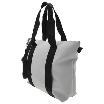 Rains Tote. SKU: 1416011. Color: Flint. The RAINS Tote Bag Mini Flint is a sleek, waterproof bag designed for everyday use. Ideal for shopping, commuting, or office wear, it features a spacious main compartment, an interior zip pocket, and multiple carrying options—including a detachable shoulder strap, long handles, and a side grab handle. Made from RAINS' signature waterproof PU fabric, it ensures durability, strength, and a smooth feel. This updated version enhances the classic Tote Bag Mini with refined functional details. Measurements: H36 x W35 x D13cm / H17.7 x W13.8 x D5.1 inches. Material: 100% polyester with polyurethane coating.