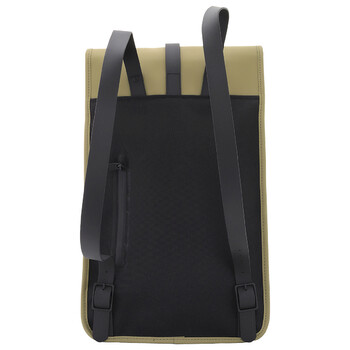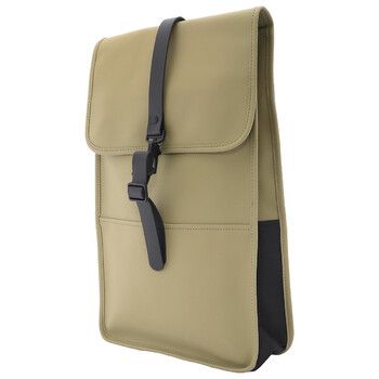 Rains Unisex Backpack. SKU: 1300044 Khaki. Barcode: 5711747577476. Color: Khaki. Size: H48 x D12 x W30 cm. Rains Water-Resistant Fabric Backpack - Khaki. Made from water-resistant fabric with a matte finish, this backpack features an inside laptop pocket, a spacious main compartment, and a hidden phone pocket on the backside. It is finished with magnetic closures, carabiner details, and adjustable straps for added convenience.