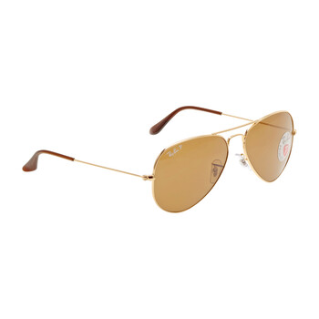 Ray Ban Sunglasses. Series Aviator Classic. Series number: RB3025. Color code: 00157. Shape: Pilot. Lens Width: 58 mm. Lens Height: 50 mm. Lens Bridge: 14 mm. Arm Length: 135 mm. 100% UV Protection. Polarized. Frame Material: Metal. Frame Color: Polished Gold. Lenses Type: Polarized Brown. Rim Style: Full-Rim. UPC/EAN code: 805289346623. Ray Ban Aviator Classic Polarized Brown Pilot Unisex Sunglasses RB3025 001/57 58.