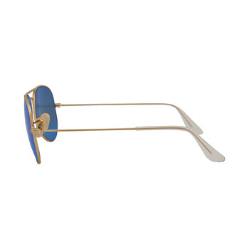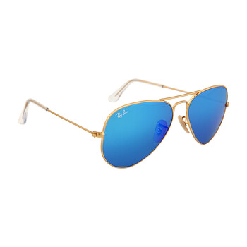 Ray Ban Sunglasses. Series Aviator Flash. Series number: RB3025. Color code: 112/17. Color: Blue. Size: 55-14. Shape: Aviator. Lens Width: 55 mm. Lens Height: 47.5 mm. Lens Bridge: 14 mm. Arm Length: 135 mm. 100% UV Protection. Non-Polarized. Frame Material: Metal. Frame Color: Gold. Lenses Type: Blue Flash. Rim Style: Full-Rim. UPC/EAN code: 8053672000504. Ray Ban Aviator Flash Blue Flash Aviator Unisex Sunglasses RB3025 112/17 55.