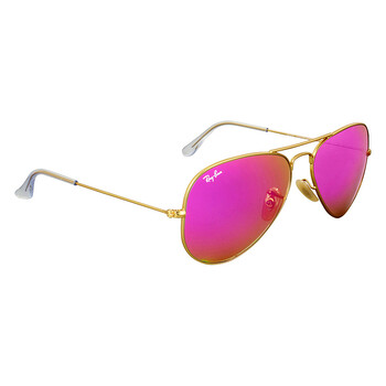 Ray Ban Sunglasses. Series Aviator Flash Lenses. Series number: RB3025. Color code: 112/4T. Color: Pink. Size: 58-14. Shape: Aviator. Lens Width: 58 mm. Lens Height: 50 mm. Lens Bridge: 14 mm. Arm Length: 135 mm. 100% UV protection. Non-Polarized. Frame Material: Metal. Frame Color: Gold. Lenses Type: Cyclamen Flash. Rim Style: Full-Rim. UPC/EAN code: 8053672339000. Ray Ban Aviator Flash Lenses Cyclamen Unisex Sunglasses RB3025 112/4T 58.