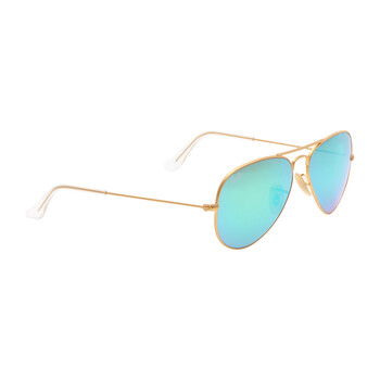 Ray Ban Sunglasses. Series Aviator Flash Lenses. Series number: RB3025. Color code: 112/19. Color: Green. Size: 55. Shape: Aviator. Lens Width: 55 mm. Lens Height: 47.5 mm. Lens Bridge: 14 mm. Arm Length: 135 mm. 100% UV protection. Non-Polarized. Frame Material: Metal. Frame Color: Gold. Lenses Type: Green Flash. Rim Style: Full-Rim. UPC/EAN code: 8053672000566. Ray Ban Aviator Flash Lenses Green Unisex Sunglasses RB3025 112/19 55.